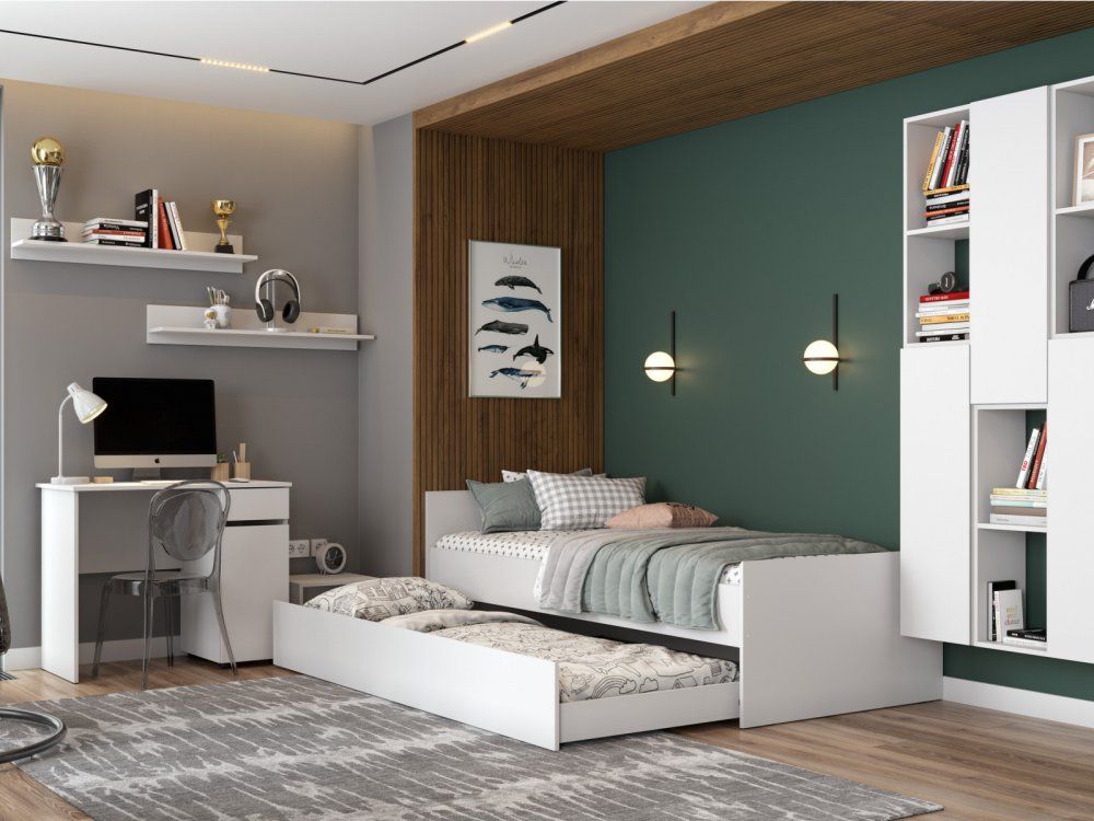Основание под матрас не входит в комплектацию кровати, заказывается на выбор из ассортимента фабрики: ЛДСП или ДСП «Лайт» соответствующего размера. Модуль Кровать одинарная можно доукомплектовать: - одним модулем Ящик для кровати (с одной стороны кровати) - двумя модулями Ящик для кровати (с двух сторон выкатные ящики) - одним модулем Кровать выкатная Скомплектовать одну Кровать одинарную с одной стороны ящиком, с другой стороны выкатной кроватью НЕЛЬЗЯ