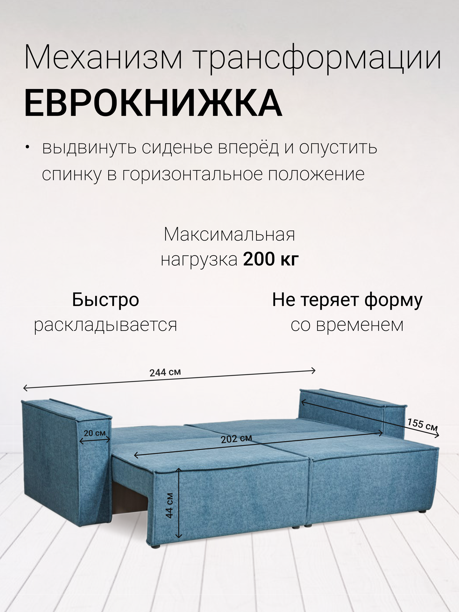 Большой двуспальный прямой выкатной диван в формате еврокнижки - это настоящий трансформер среди мебели в стиле ЛОФТ. Этот раскладной диван-кровать обладает комбинированным дизайном, сочетающим функциональность и элегантность. Превратившись в удобное спальное место, наш тканевый диван-кровать с мягкой спинкой не оставит вас равнодушным. Он оснащен удобными подушками для дополнительной поддержки и широкими и мягкими подлокотниками. Деревянный каркас же придает ему прочность и надежность. Этот двуспальный диван-кровать можно легко раскладывать и собирать благодаря механизму "еврокнижка". С доставкой он будет у вас дома в кратчайшие сроки, готовый преобразить ваш зал или кухню в уютное место для отдыха и приема гостей. Почувствуйте комфорт и уют с этим стильным и практичным предметом интерьера.