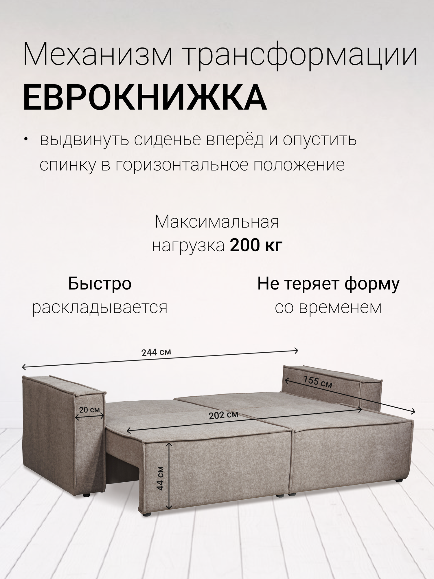 Большой двуспальный прямой выкатной диван в формате еврокнижки - это настоящий трансформер среди мебели в стиле ЛОФТ. Этот раскладной диван-кровать обладает комбинированным дизайном, сочетающим функциональность и элегантность. Превратившись в удобное спальное место, наш тканевый диван-кровать с мягкой спинкой не оставит вас равнодушным. Он оснащен удобными подушками для дополнительной поддержки и широкими и мягкими подлокотниками. Деревянный каркас же придает ему прочность и надежность. Этот двуспальный диван-кровать можно легко раскладывать и собирать благодаря механизму "еврокнижка". С доставкой он будет у вас дома в кратчайшие сроки, готовый преобразить ваш зал или кухню в уютное место для отдыха и приема гостей. Почувствуйте комфорт и уют с этим стильным и практичным предметом интерьера.