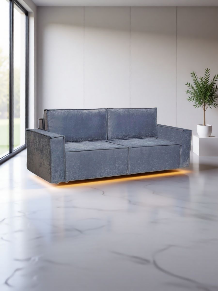 Диван в стиле ЛОФТ. Диван для всех, многофункционален и удобен. Диван-кровать Сатурн станет изюминкой любого интерьера для семейного отдыха и приема гостей. Широкие мягкие подлокотники добавят комфорт и уют. Декоративная строчка по краю дивана делает его еще более оригинальным. Обивка дивана – износостойкий велюр. Диван имеет удобную конструкцию «Еврокнижка», с помощью которой образуется полноценное спальное место.