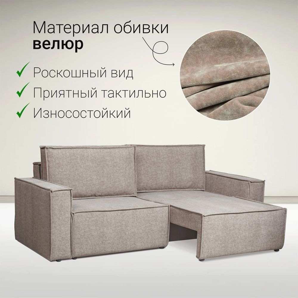 - Прочный и комфортный: Каркас из дерева с ламинированным покрытием сочетается с мягким велюром натуральным, обеспечивая долгий срок службы и приятные тактильные ощущения.
