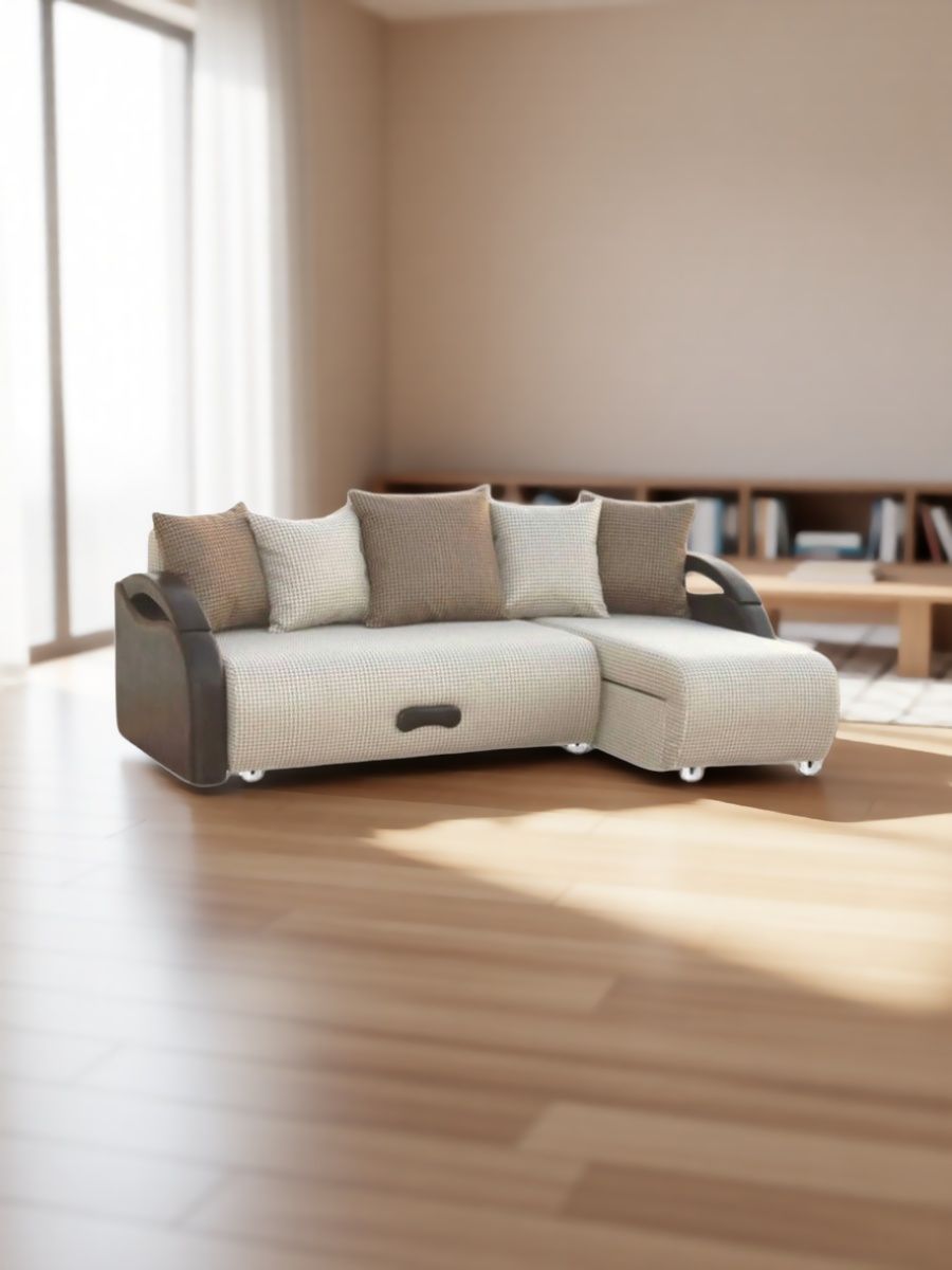 Угловой диван-кровать «Юпитер» от фабрики Галакси — комфорт и стиль вашего дома! Дивайнная мягкость еврокнижки, прочность дерева в конструкции и удобство беспружинного матраца обеспечат приятное времяпровождение и здоровый сон. Обивка из натуральной рогожки светло-кремового оттенка (Ратибор светлый) придаст интерьеру элегантности, а встроенный короб для белья добавит функциональности. Удобен как днем, так и ночью, выдерживая нагрузку до 300 кг. Сделано в России по высоким стандартам качества.