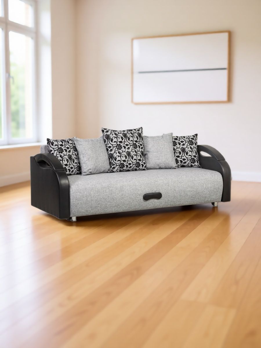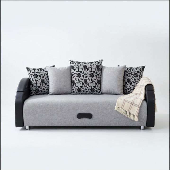 Это универсальная мягкая мебель для ежедневного сна и отдыха. Модель оснащена спальным местом 1930×1400 мм, подходит для гостиной, спальни, детской. Обивка — мелкая рогожка (серый), каркас — массив хвойных пород. Наполнитель: эластичный ППУ или пружинный блок Боннель. Внутри — бельевой короб с ламинированным покрытием.