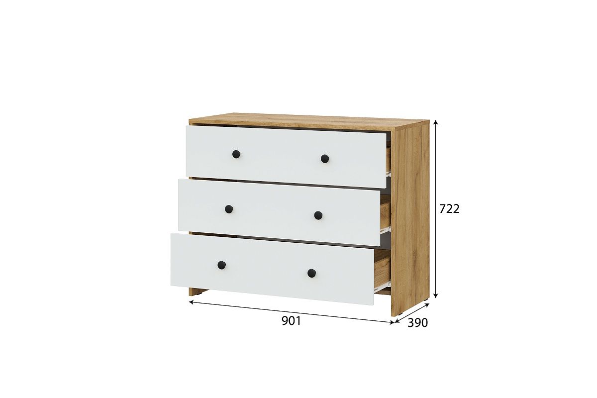 - Комод 3 ящика, 901*726*390 мм, Направляющие роликовые, максимальная нагрузка на крышку 15 кг.