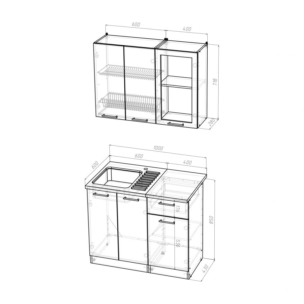 Ширина, мм-1000 Глубина, мм-600 Высота столов, мм-850 Высота шкафов, мм-720
