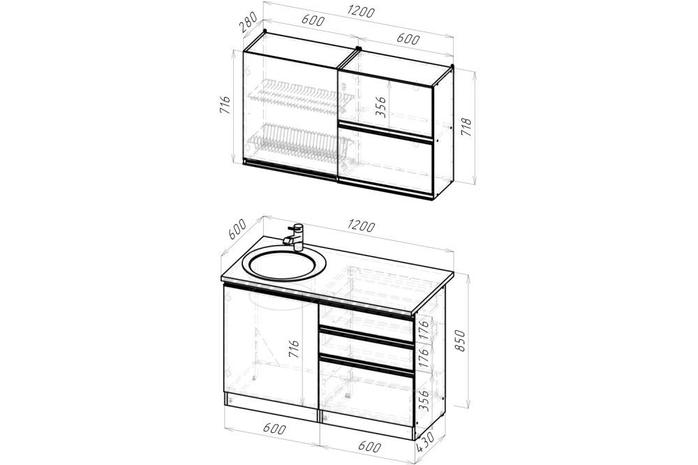 ***Мойка, смеситель, стеновая панель и посудосушитель в комплект гарнитура не входят.