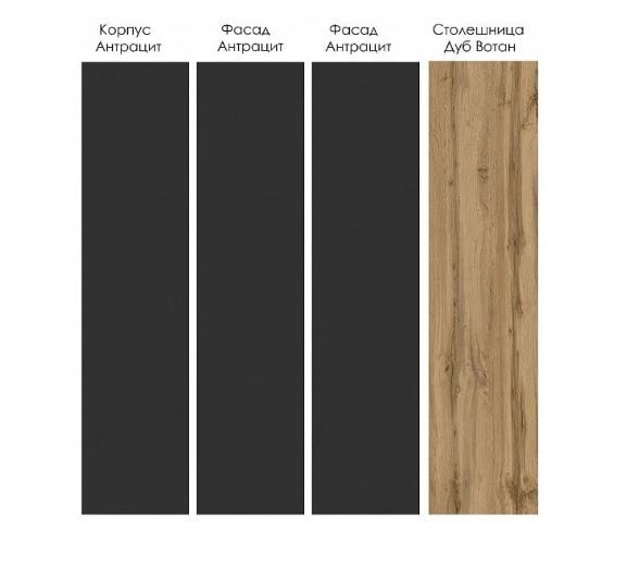 Ширина кухни 1200мм - Верхние модули: Высота 720 мм Цвет корпуса: Антрацит Фасады: Антрацит - Нижние модули: Цвет корпуса:Антрацит Фасады: Антрацит Столешница: Дуб Вотан h26 мм