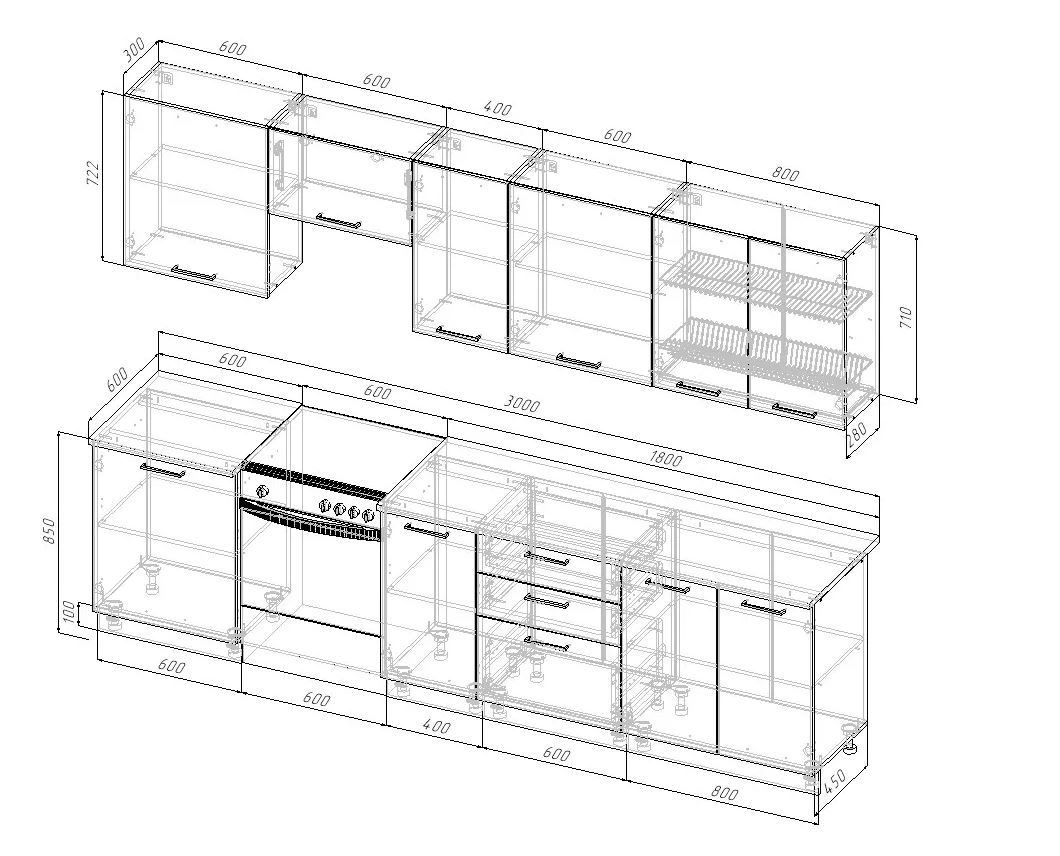 Размер (Ш*Г*В): 3000*600*2160 мм