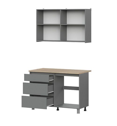 Сборка верхних корпусов и стола шириной 400мм универсальная.Материал корпуса: ЛДСП, цвет графит