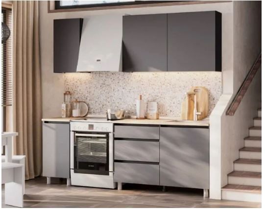 Кухонный гарнитур Den 1,6м выполнен в современном стиле лофта с контрастными акцентами белого корпуса и светло-коричневой столешницы. Прямая форма обеспечивает оптимальное использование пространства даже в небольших помещениях.