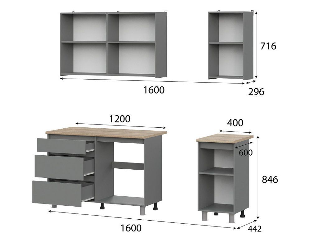 Все модули комплектуются столешницей (под врезную мойку)