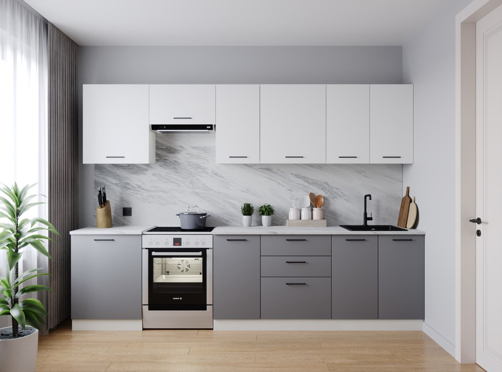 В760 Модуль верхний (ШхГхВ) 600х300х710мм -2 шт ВГ60 Модуль верхний горизонтальный (ШхГхВ) 600х300х362мм – 1 шт В740 Модуль верхний (ШхГхВ) 400х300х710мм – 1 шт ВС780 Модуль верхний с посудосушителем (ШхГхВ) 800х300х710мм -1 шт Н60 Модуль нижний (ШхГхВ) 600х470х824мм – 1 шт Н40 Модуль нижний (ШхГхВ) 400х470х824мм – 1 шт Н3Я60 Модуль нижний для ящиков (ШхГхВ) 600х470х824мм -1 шт Н80 Модуль нижний (ШхГхВ) 800х470х824мм – 1 шт С180 Столешница 1800х600х26мм (38мм) – 1 шт С60 Столешница 600х600х26мм (38мм)– 1 шт Ручка черная металлическая 160мм – 13 шт