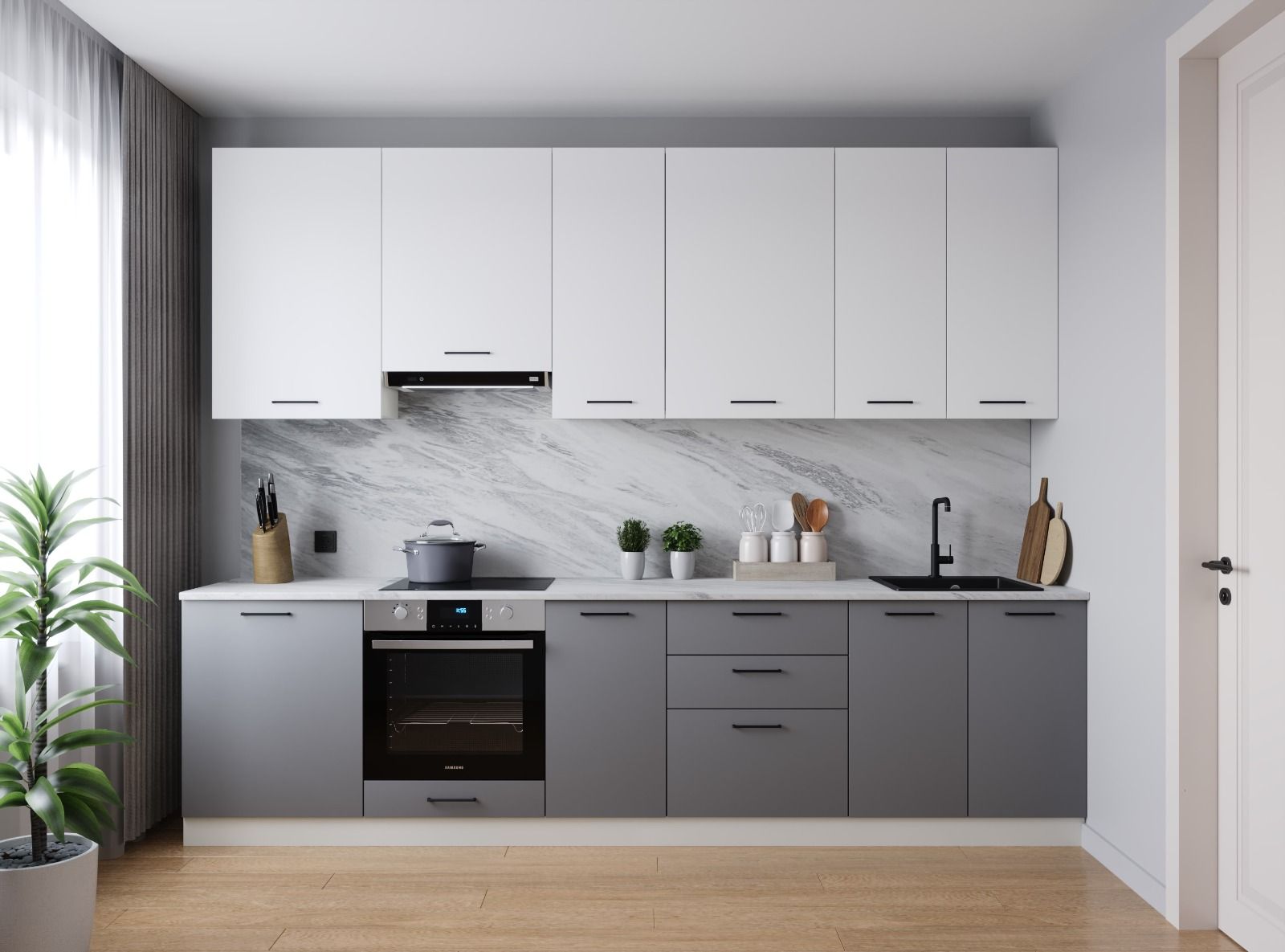 *Мойки, смесители, стеновая панель, подсветка, бытовая техника в комплект не входят, их необходимо приобрести отдельно.