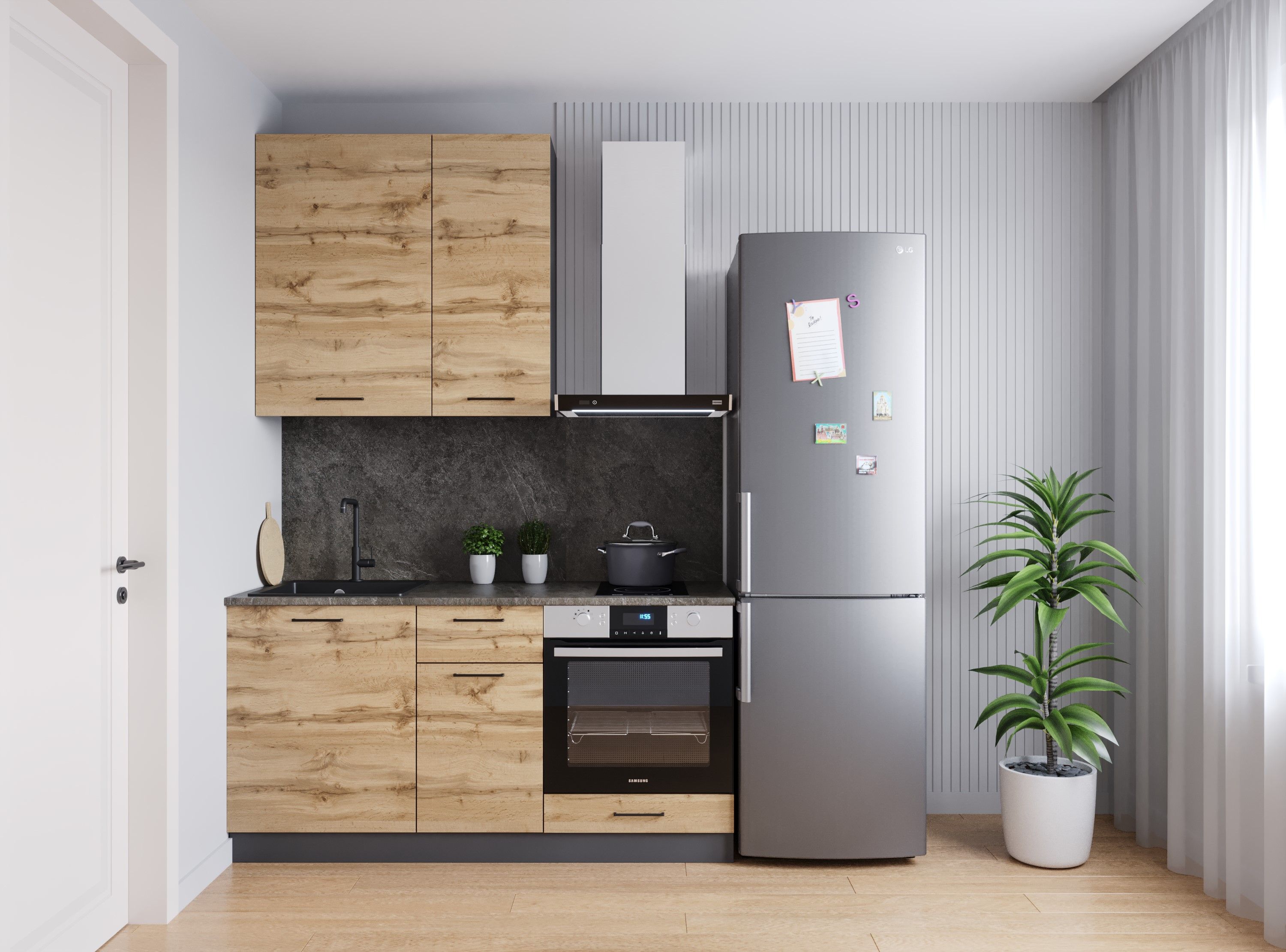 Фасады верхних модулей со свесом 12 мм дают возможность использовать без установки ручек.