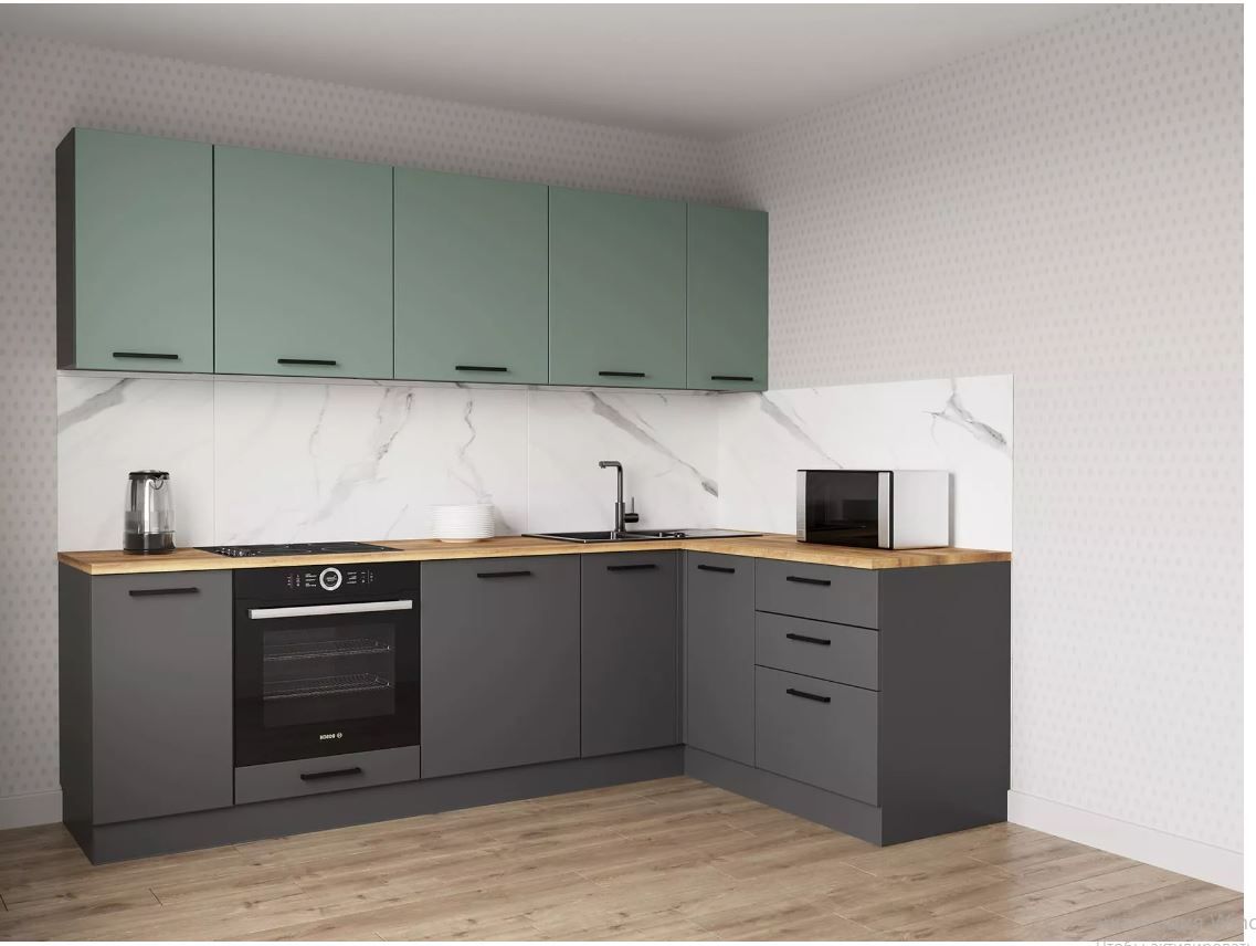 - Столешницы цельные со скруглением по переднему краю, пластиковым покрытием и силиконовый каплесборник (защищает фасады нижних модулей от попадания влаги и разбухания);
