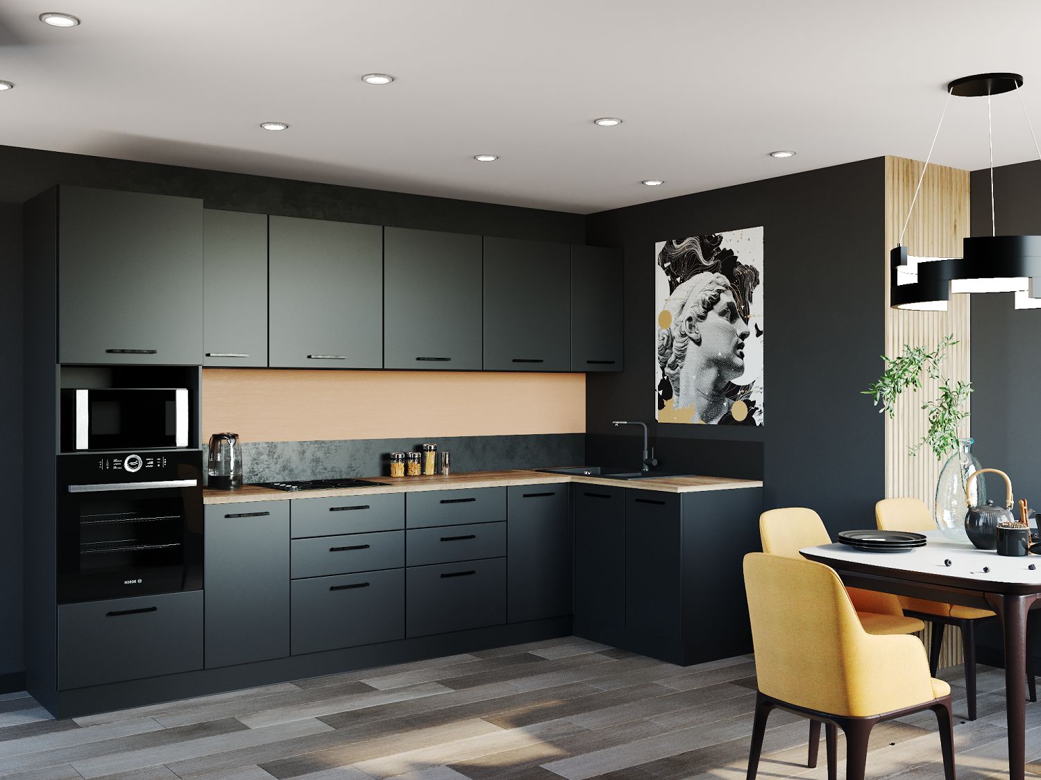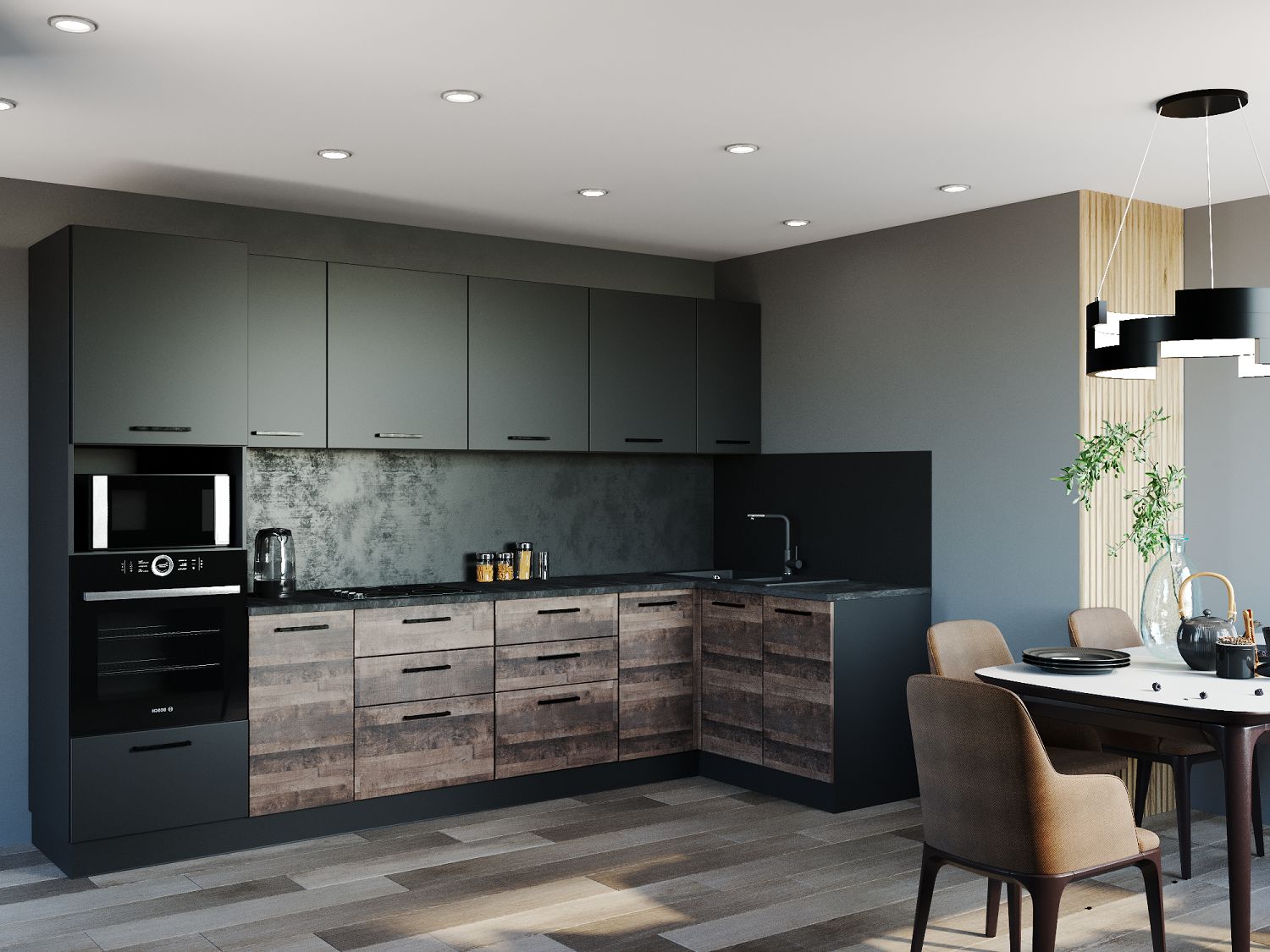 черный / - / Антрацит/Муссон, Дуб вотан / 9403401000 - Мебель деревянная кухонная секционная / 340000 / изумруд / 38 / Лофт