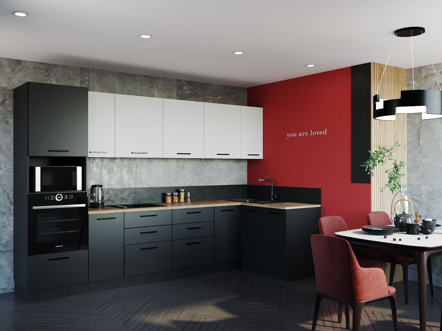 *Мойки, смесители, стеновая панель, бытовая техника в комплект не входят, их необходимо приобрести отдельно. / Антрацит/Жемчуг, Детройт / 9403401000 - Мебель деревянная кухонная секционная / 340000 / Лофт / 26 / Современный