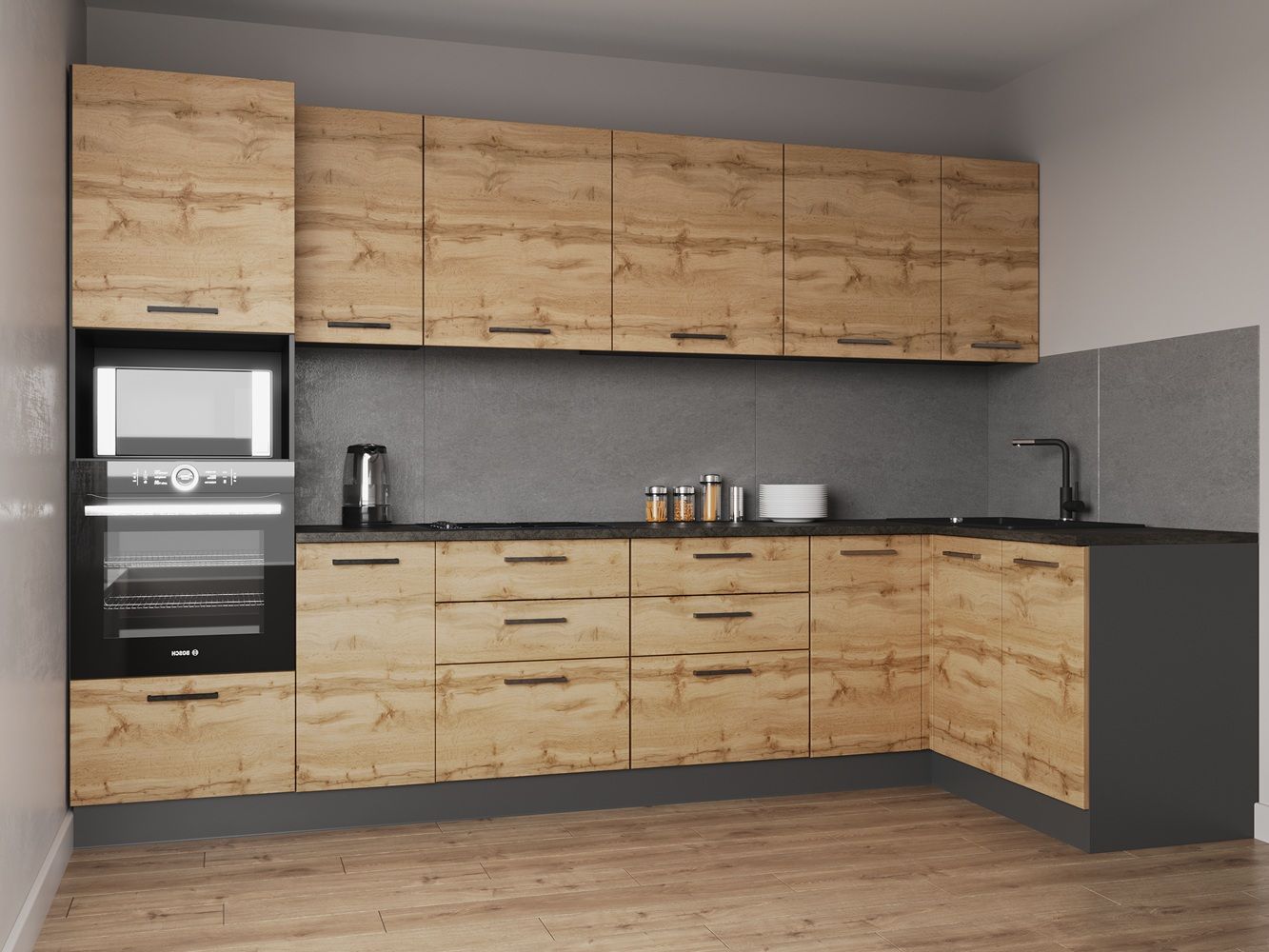 Кухонный гарнитур угловой Крафт 3200х1400 мм столешница 26 мм