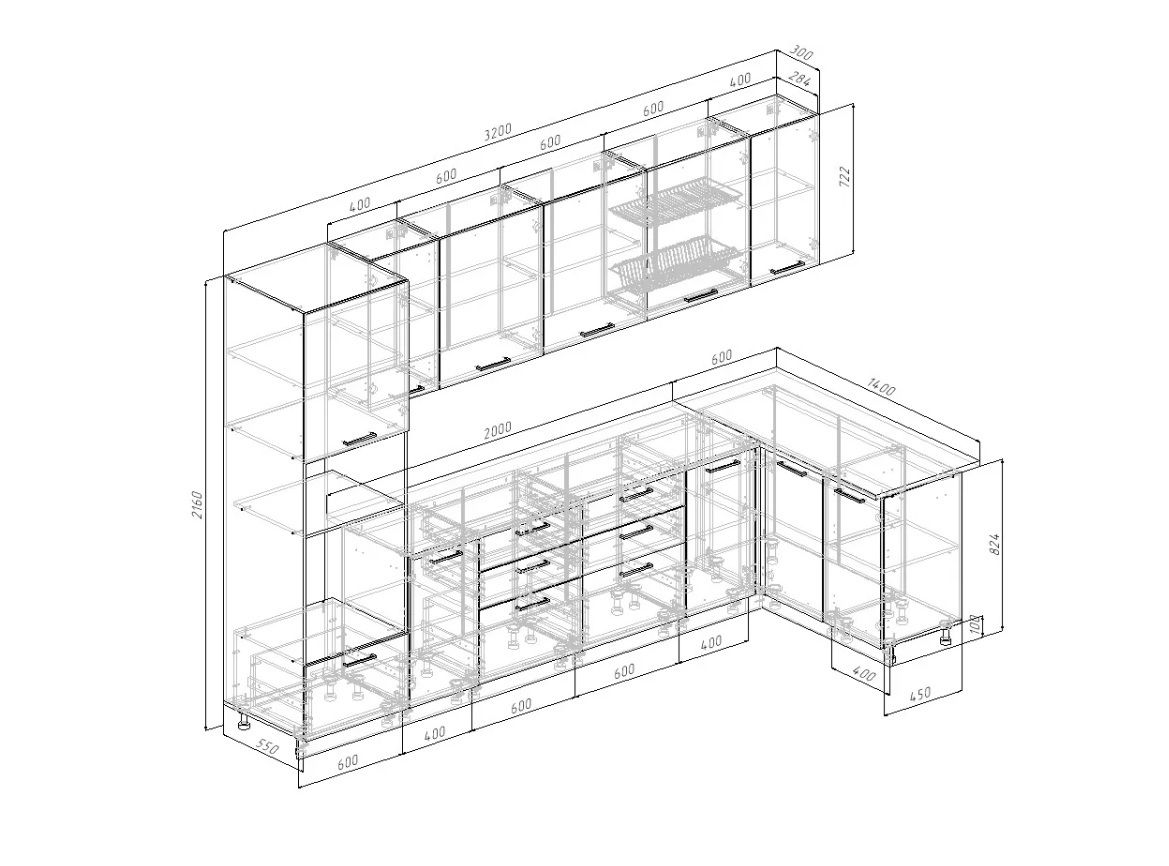 Кухонный гарнитур угловой Лофт 3200х1400 мм столешница 26 мм
