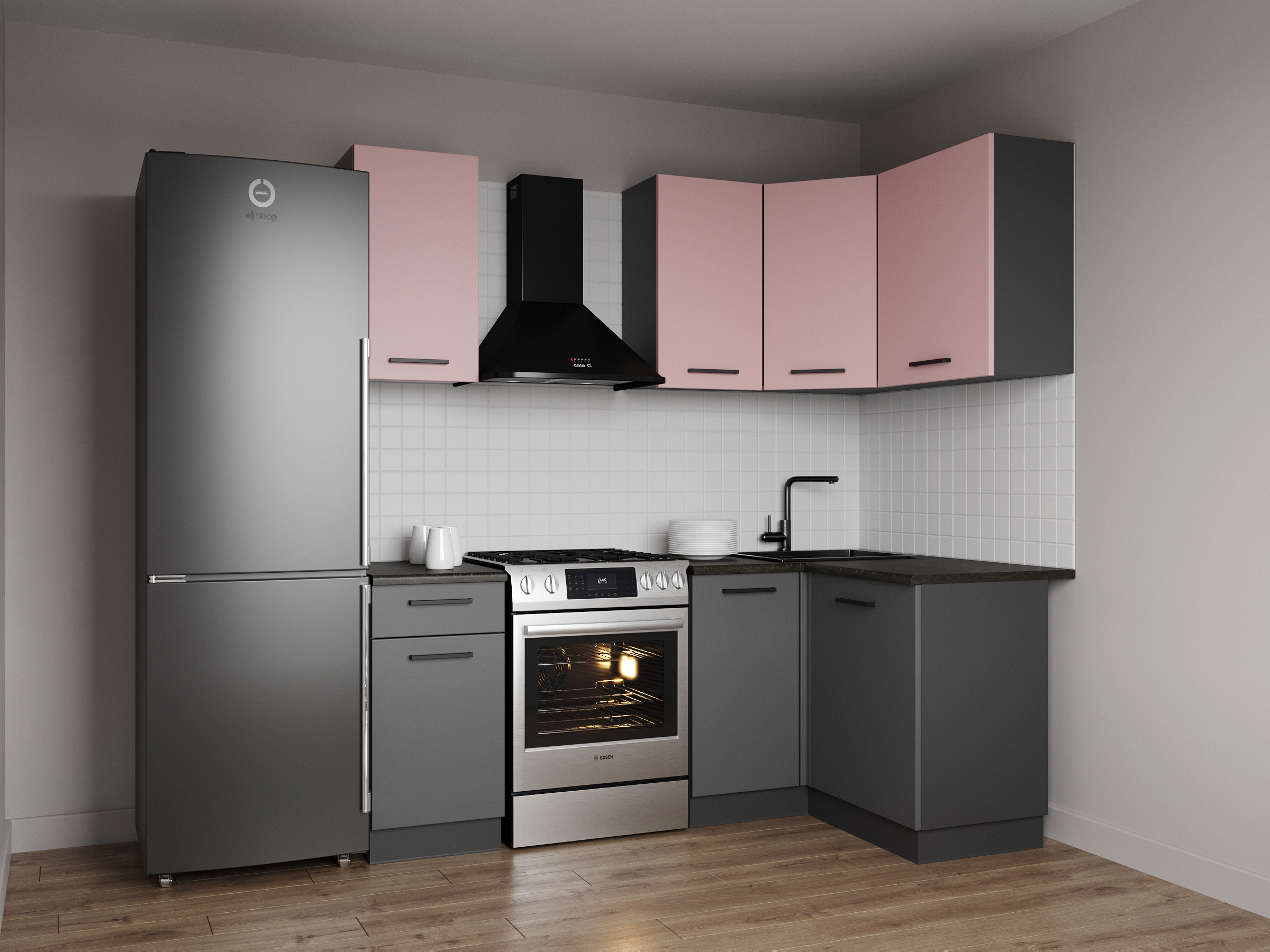 Кухонный гарнитур угловой Роза 2000х1200 мм столешница 26 мм (с отдельно стоящей плитой)