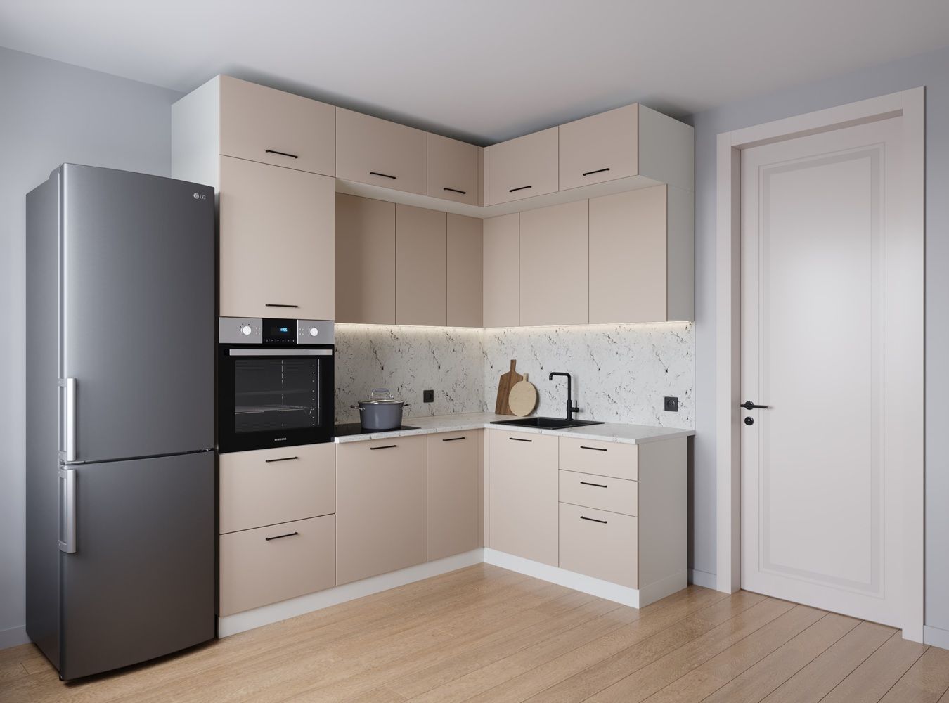 Модули первого верхнего яруса с фасадами со свесом 12 мм, что позволяет открывать их без установленных ручек.