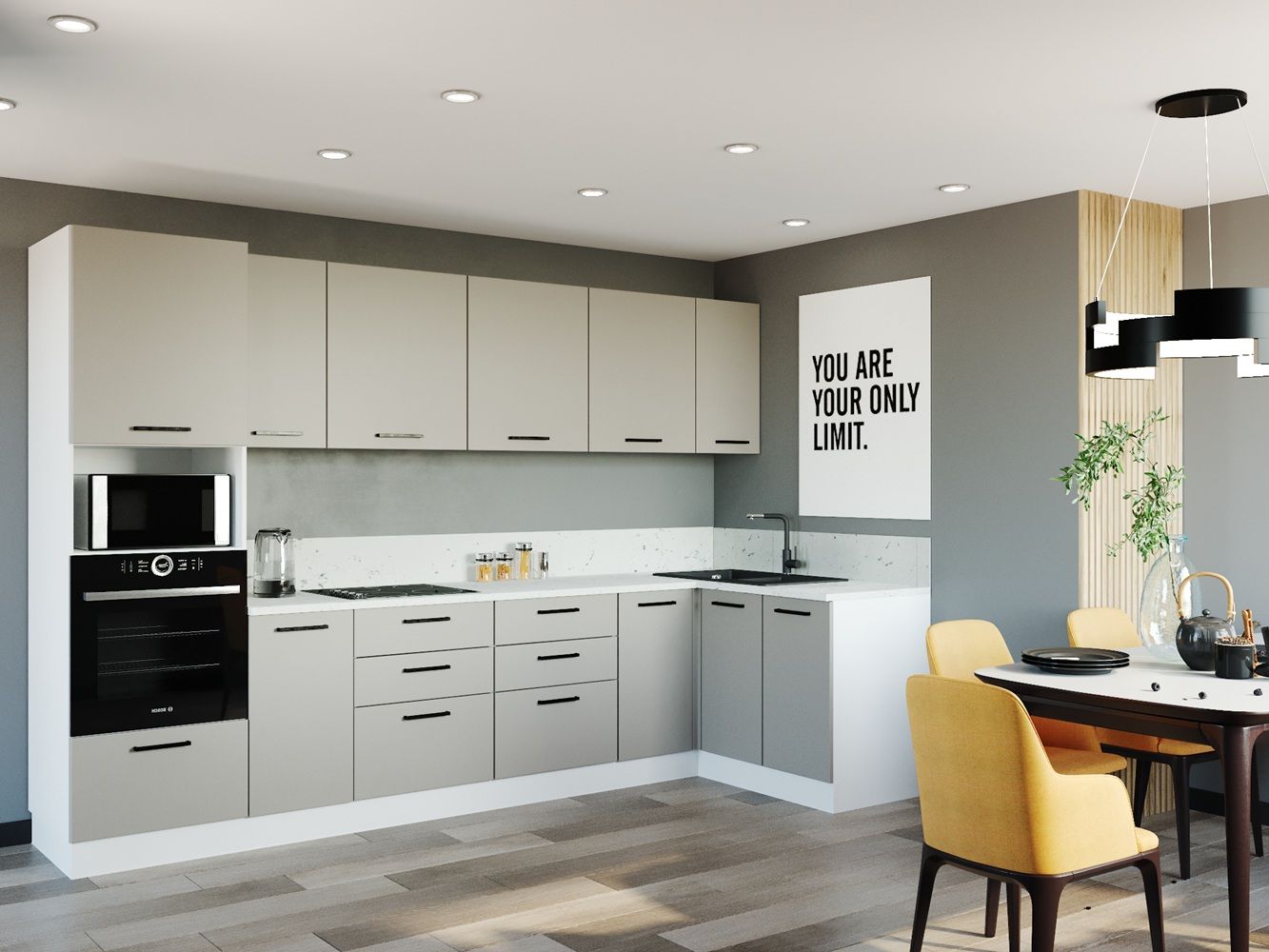 Мойка, смеситель, стеновая панель, бытовая техника в комплект не входят.