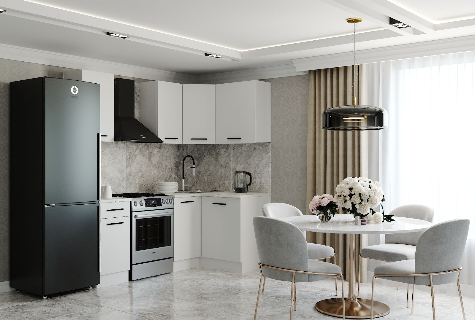 Кухонный гарнитур угловой Жемчуг 2000х1200 мм столешница 26мм (с отдельно стоящей плитой)