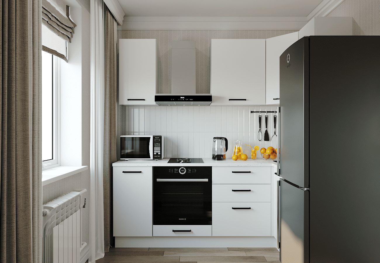 - Столешницы цельные со скруглением по переднему краю, пластиковым покрытием и силиконовый каплесборник (защищает фасады нижних модулей от попадания влаги и разбухания);