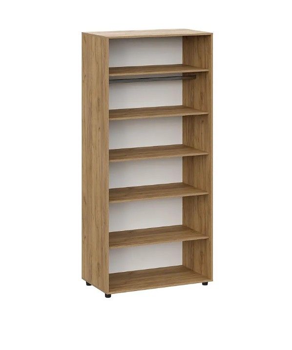 В шкафу сверху одна вязка, под ней штанга металлическая, ниже четыре съемные полки (идут в комплекте).Сборка корпуса не универсальная. Максимальная нагрузка на полку - 5кг.