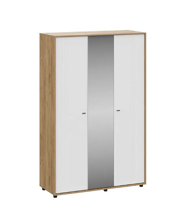 Шкаф трехстворчатый Милан Дуб Золотой/Белый Матовый
