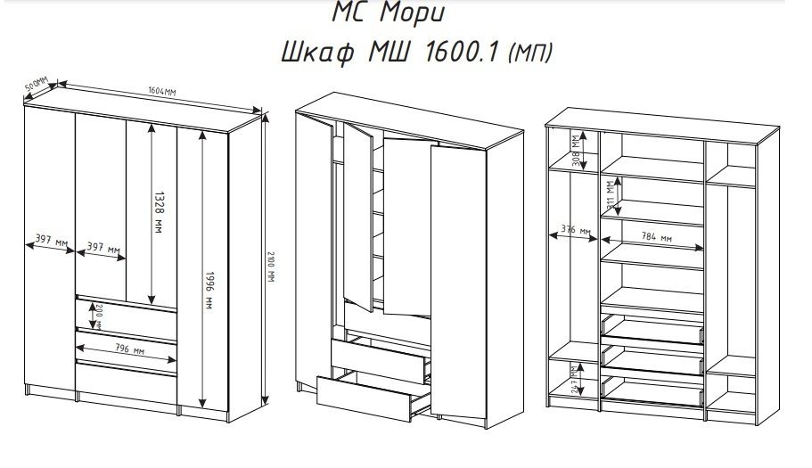 Габаритные размеры Ш*В*Г: 1604*2100*478мм