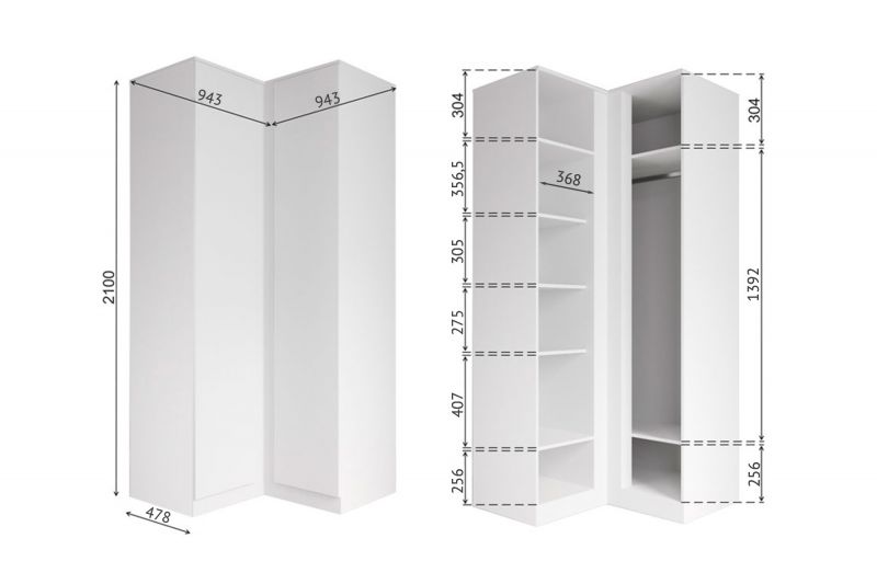 Габаритные решение Ш*Г*В: 943/943*478*2100 мм