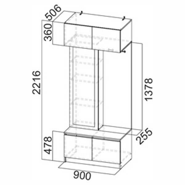 Размер (Ш*Г*В): Вешалка с зеркалом, 900*506*2216 мм