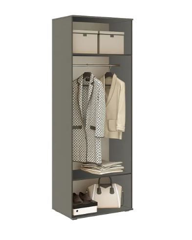 Внутреннее наполнение шкафа состоит из штанги и полок, что позволяет вам организовать хранение вашей одежды и аксессуаров. Вы сможете легко найти нужную вещь благодаря удобной системе хранения.