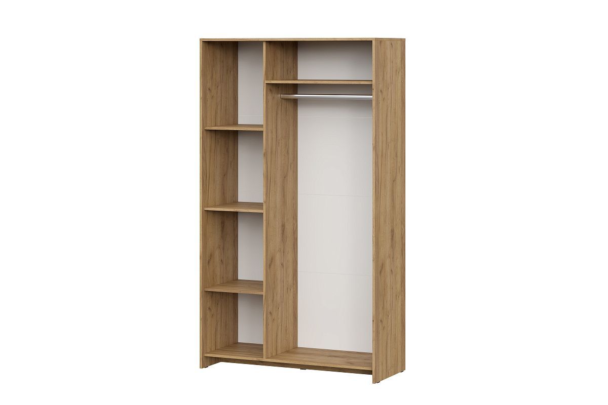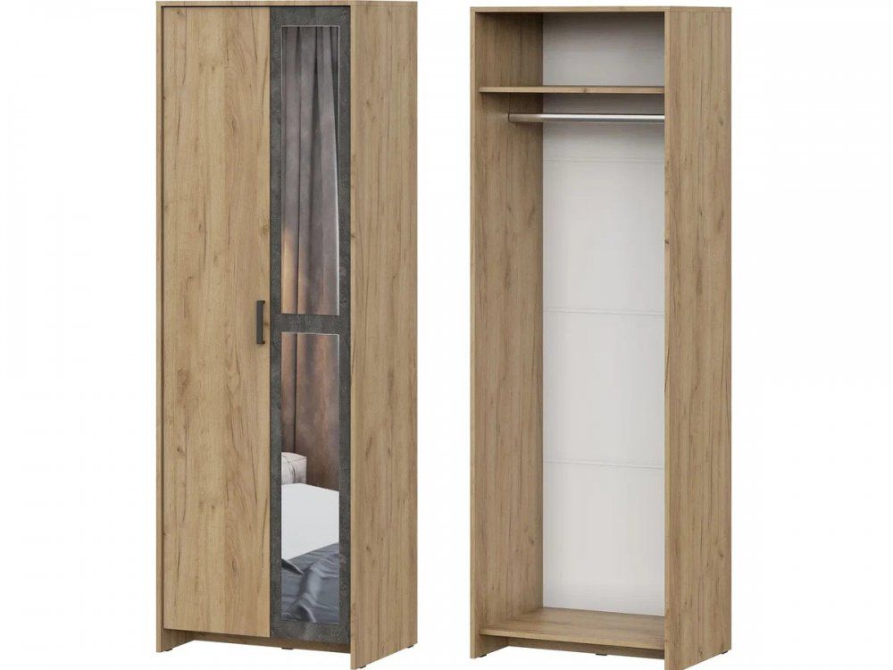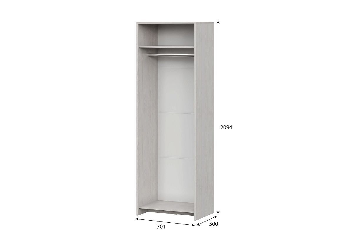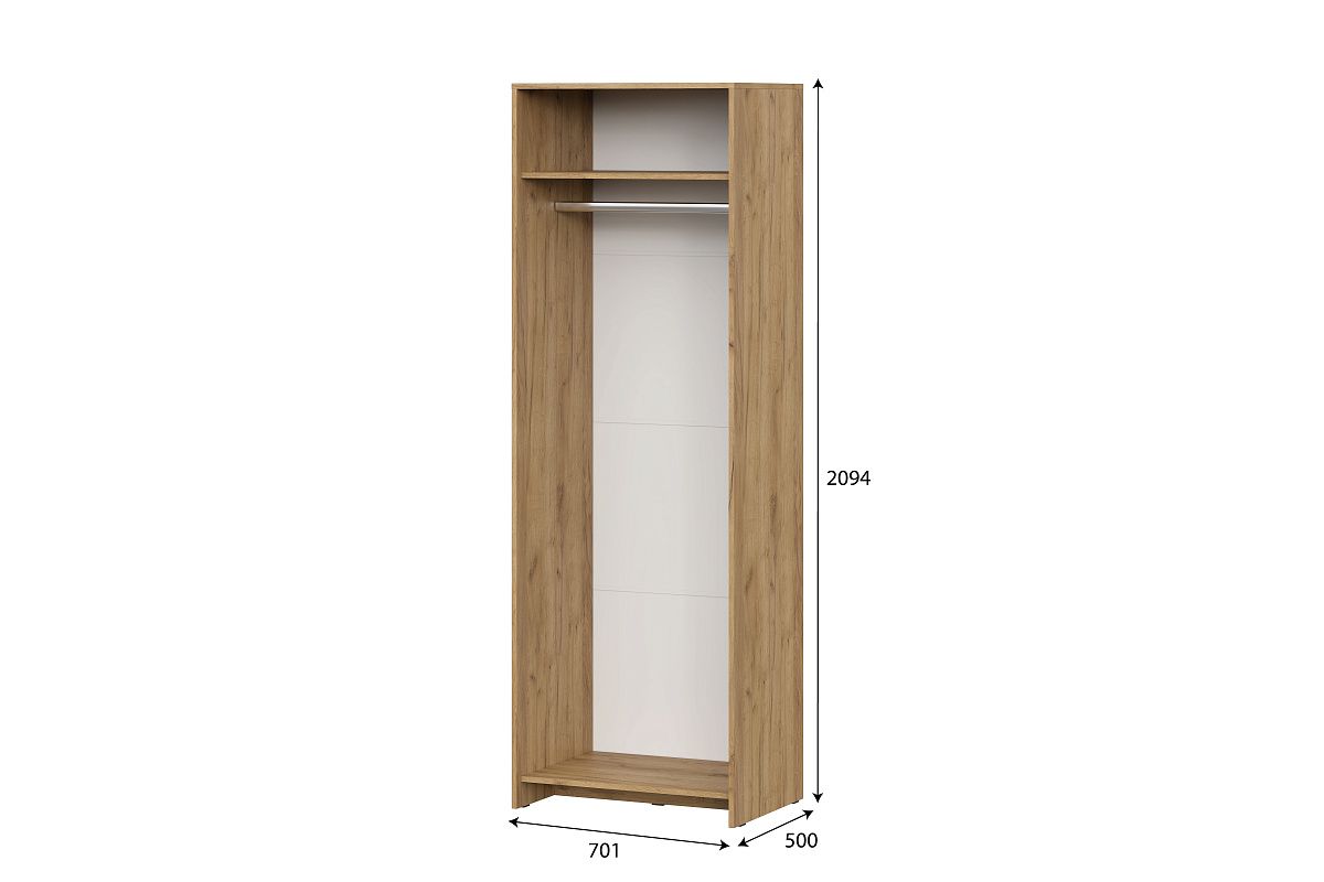 В правой платяной секции шириной 734 мм располагаются стационарная полка вверху и металлическая штанга.