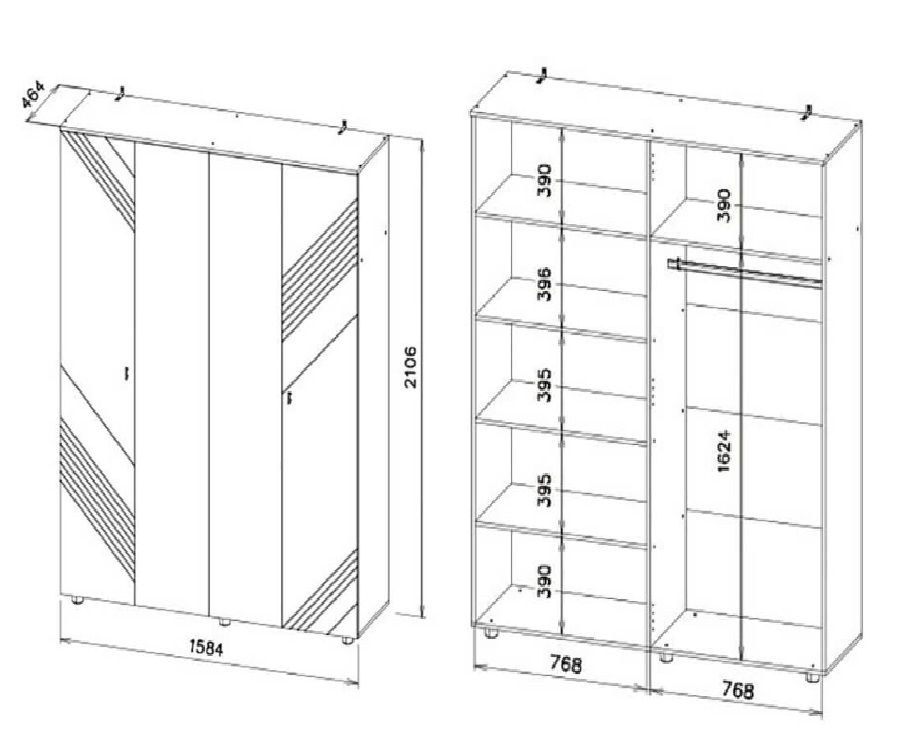 Габариты модуля (ШхВхГ): 1584х2106х464 мм Фасады накладные