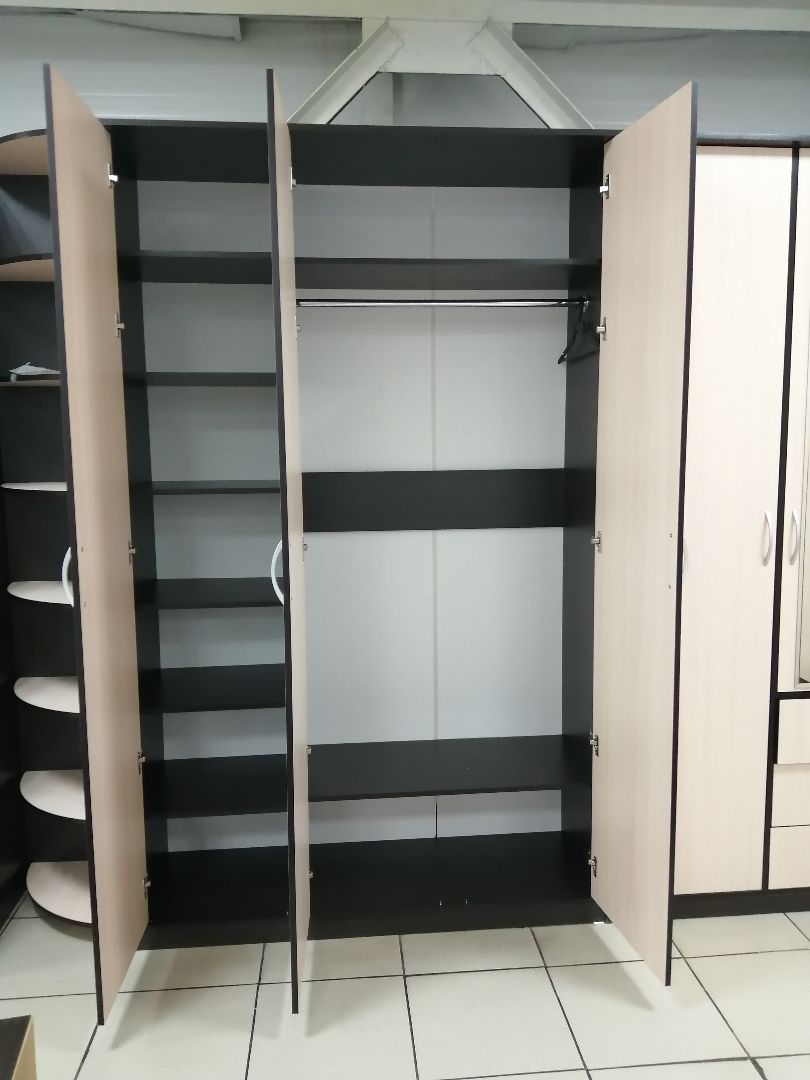 Шкаф имеет в наполнении полки и штангу.