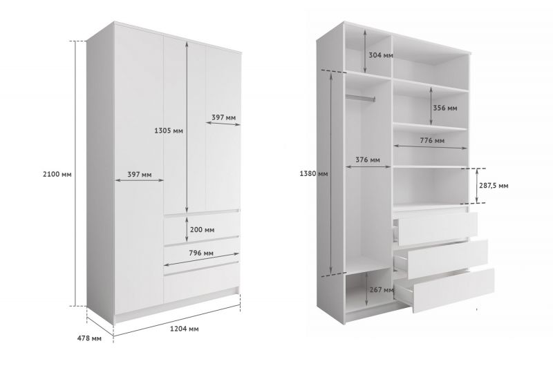 Габаритные размеры Ш*В*Г: 1204*2100*478 мм