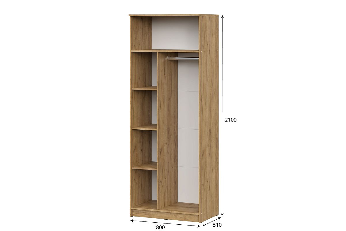 Шкаф ШК-2 - универсальный распашной шкаф с полноценной глубиной, который комплектуется бельевым отделением с полками и платяным отделением со стандартной металлической штангой.